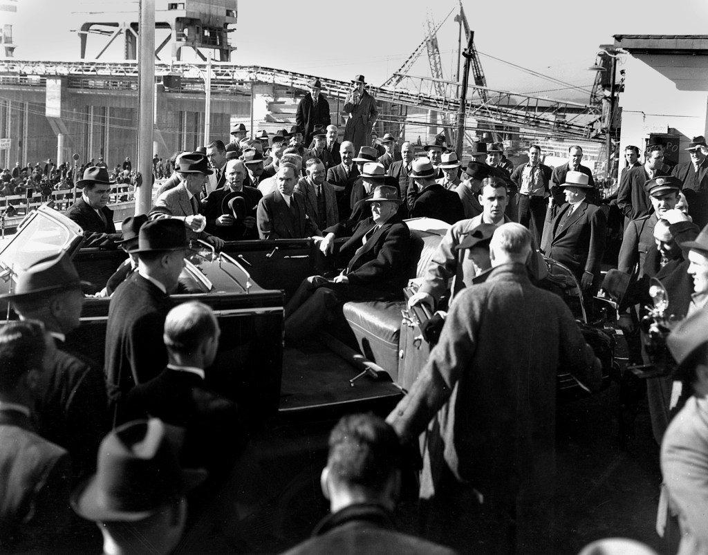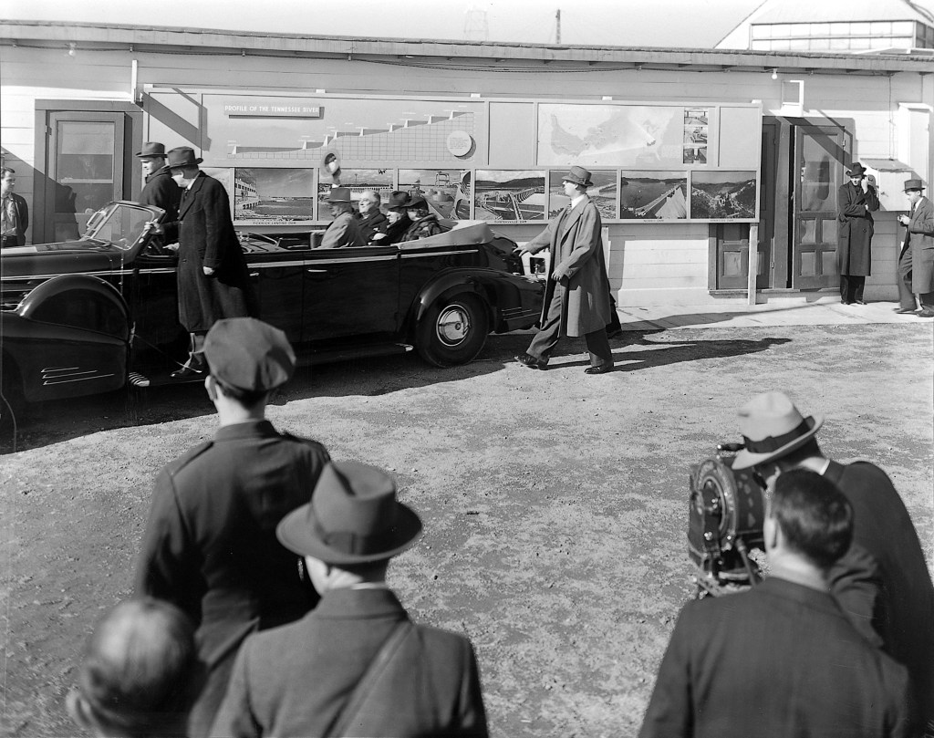 President Roosevelt visited Chickamauga Dam and the battlefields around Chattanooga, Tennessee, today on his way to a two-week vacation at his retreat in Warm Springs, Georgia.