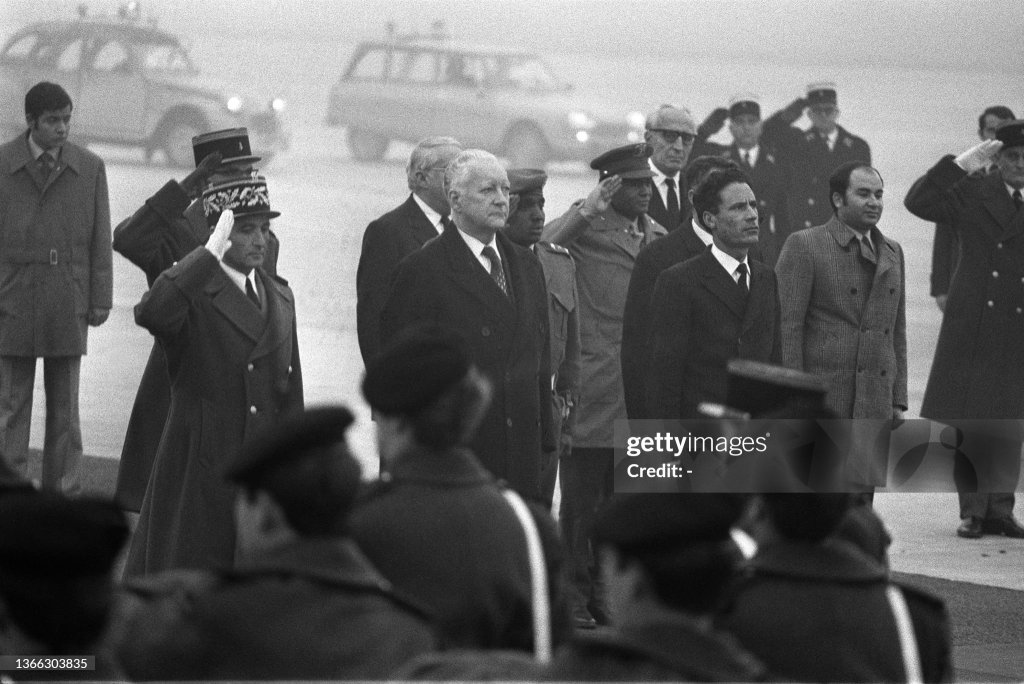 Libyan leader Muammar Qaddafi visited Paris, where the wrong national anthem was played for him. France gets most of its oil from Libya. Qaddafi, the Libyan leader, arrived in Paris and was expected to demand that the French deliver more and better arms, possibly including atomic weapons, and lift restrictions on the transfer of French arms to Egypt and Syria. He was on a private trip, but planned to meet today with President Pompidou.