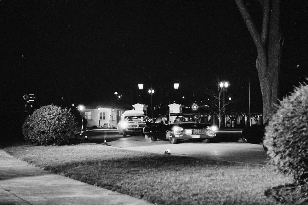 Mrs. Kennedy returned to the White House from the Bethesda Naval Hospital at 4:30 a.m. today. She rode in the hearse that bore her husband’s body in a coffin. She still wore the pink suit, stained by his blood, she had worn in the Dallas parade. She said her last goodbye in the hospital, those near her reported. She slipped her wedding ring on the slain President’s finger and kissed him. Then the casket was closed.