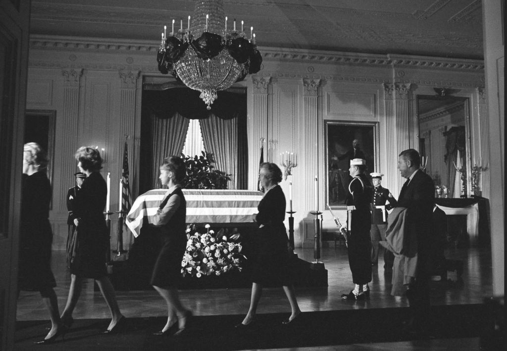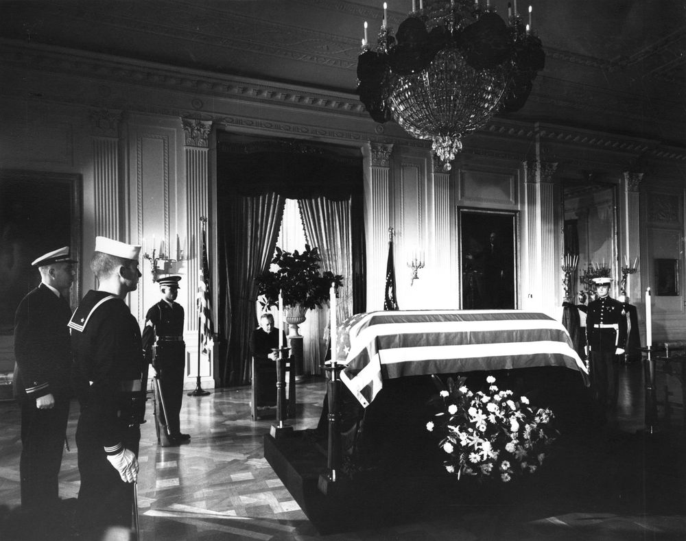 John F. Kennedy’s body lies in repose in the East Room of the White House.