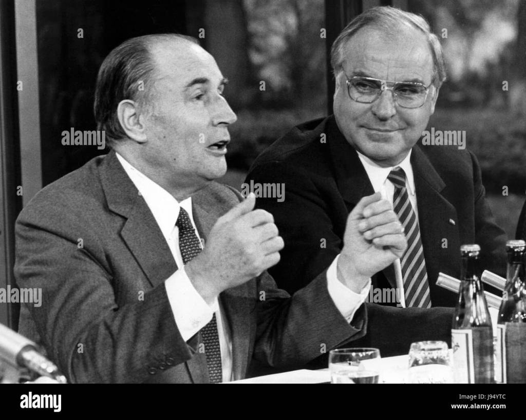 West Germany and France reacted in tones of studied calmness to the Soviet Union’s decision to break off the Geneva talks on medium-range missiles. Chancellor Helmut Kohl and President Francois Mitterrand expressed hope at a meeting in Bonn that the arms talks would eventually be resumed.