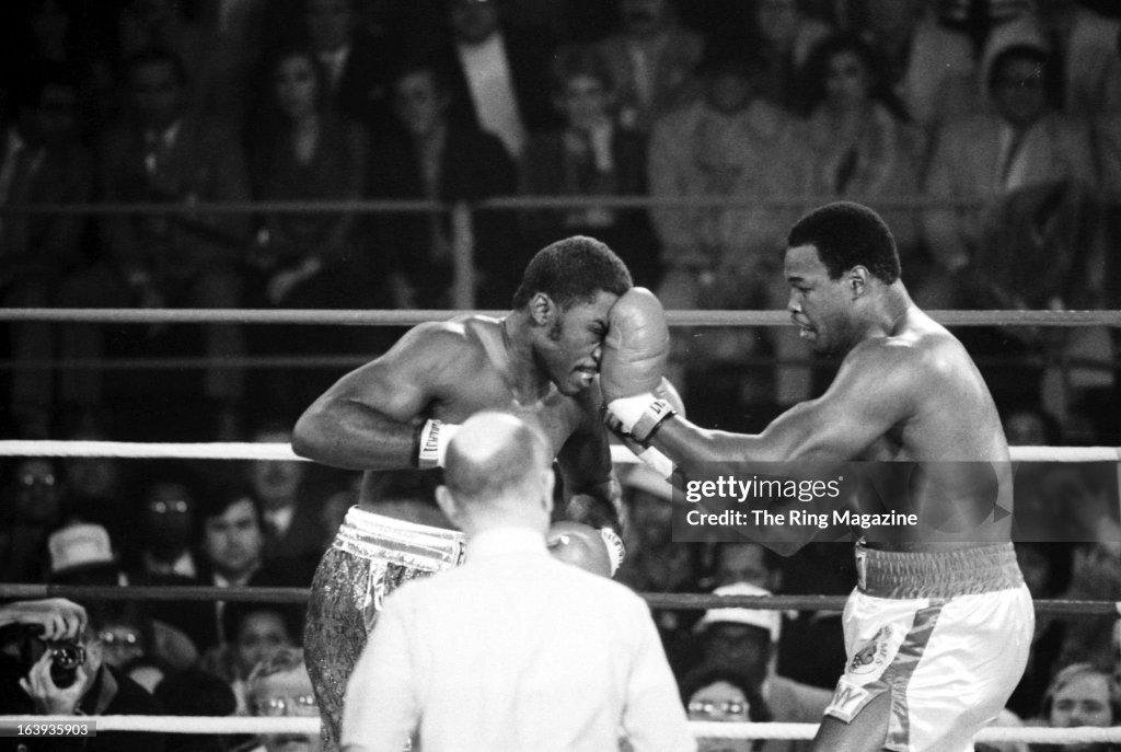 Larry Holmes TKOs Marvis Frazier in the first round for the WBC heavyweight boxing title.
