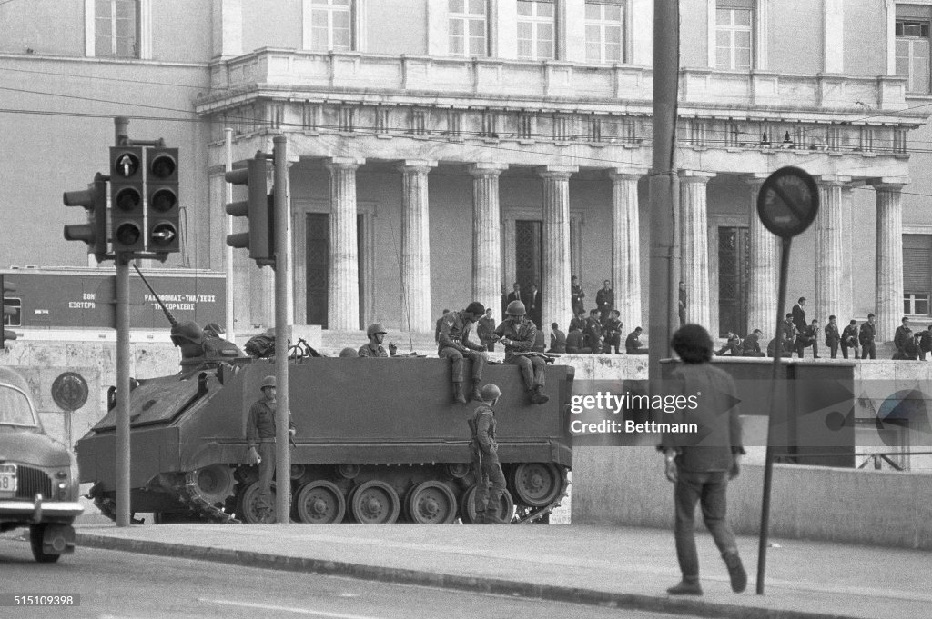 George Papadopoulos, the President of Greece since declaring a republic in May, and its de facto leader since 1967, was ousted in a military coup led by Brigadier General Dimitrios Ioannidis. Lieutenant General Phaedon Gizikis was sworn in as the new president. The Greek military has overthrown the government; President Papadopoulos was ousted early today. Streets in Athens are quiet after the calm overthrow of the Papadopoulos government. General Phaedon Gizikis was sworn in as the head of the new government in a nationally televised ceremony.