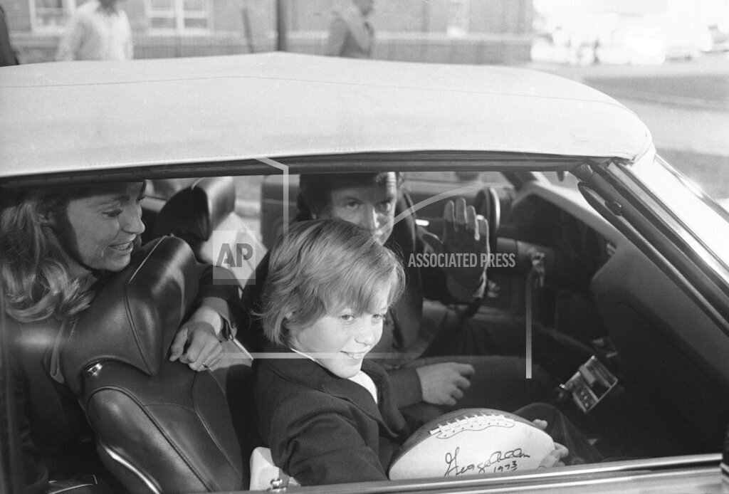 Twelve-year-old Teddy Kennedy, Jr. left a Washington hospital after his leg was amputated. Teddy walked out on a temporary limb without assistance. Senator Edward Kennedy carried a football that was presented to his son by Washington Redskins coach George Allen.