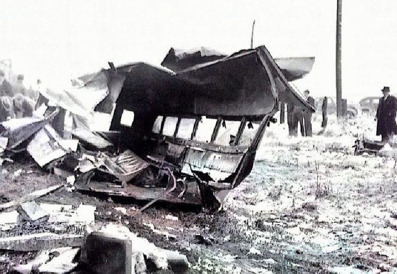 The bus was made completely of steel. The right side of the bus was sheared off and the body of the bus came to rest one hundred feet from the railroad crossing, while the sturdier chassis of the bus was pushed by the train engine almost a half mile further down the track before the train came to a stop. Debris from the bus was scattered along that half mile. The bus chassis forced the lead pair of train engine wheels off the tracks and welding torches were necessary to later cut the bus chassis out from underneath the front of the train engine. David Witter, an unemployed twenty-two-year-old truck driver, was catching a ride in a boxcar, walking back and forth, trying to keep warm, when the train came to a stop. He got out to see “the awfullest thing I ever saw.” At first, because of all the carnage, he assumed that the train had hit a cattle truck, then he saw the children in the snow, some lying still and some looking “bewildered.”
