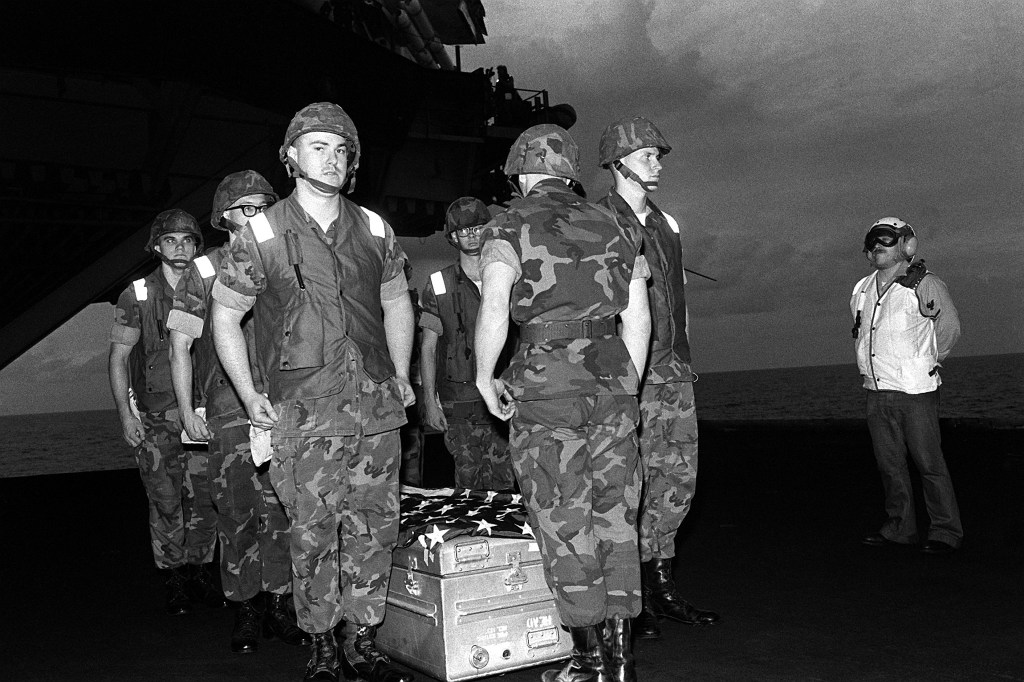 A joyful hero’s welcome was accorded to 1,800 marines and sailors as they returned home to Camp Lejeune, North Carolina. They are the survivors of the unit that lost 240 men in a bomb attack in Beirut in October. School bands played, and thousands of yellow ribbons floated from trees, telephone poles and car antennas.