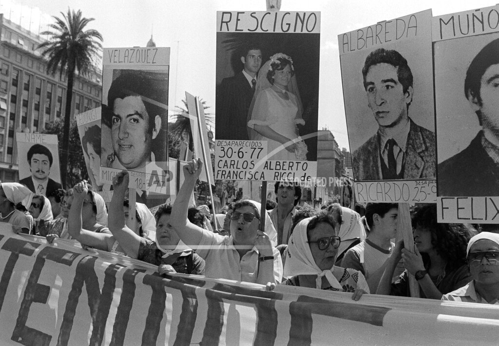 About 10,000 Argentines joined the Mothers of the Plaza de Mayo for their weekly march before the presidential palace in Buenos Aires to protest the disappearance of thousands of people during the military government’s “dirty war” against terrorists in the 1970s. It was the last such demonstration before an elected civilian government takes over on Saturday.