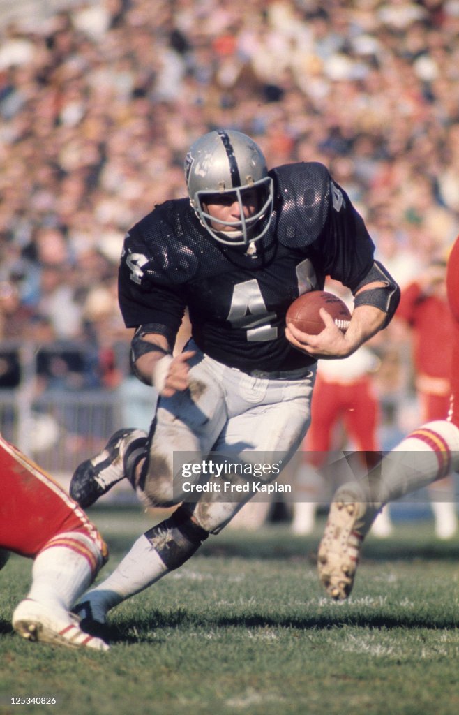 So it gave Oakland great field position and what followed was a fine demonstration of the phrase “ball control”. The Raiders went on to score on that sequence and to outgain the Chiefs 353 yards to 106. They kept possession for 27 of the first 36 minutes of play while building a 23—0 lead (20—0 at the half), and wound up running 33 plays from scrimmage to Kansas City’s 42. This season, Oakland’s previous high spot was a 12—7 victory over Miami, ending the two‐year winning streak of the Dolphins. But persistently low scoring led to a switch of quarterbacks from Daryle Lamonica to Stabler, and things began to balance off for a team long known for its rugged defense. Today, although the last two Oakland touchdowns resulted from fourth‐quarter interceptions deep in Kansas City territory, the game was completely one‐sided during the first three quarters, even though the 23—7 score at that point gave the illusion that the Chiefs had time to pull it out.