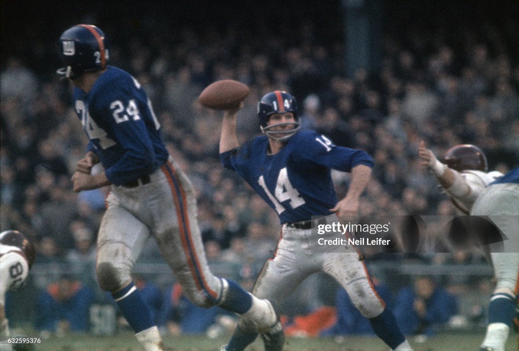 Snead, throwing off his heels, was intercepted three times by Jerry Hillebrand in the first quarter and by Erich Barnes (in the New York end zone) and Dick Lynch (who returned 42 yards for a touchdown) in the second period. Izo threw four passes to Giants-two to Jimmy Patton, one to Lynch and one to Sam Huff (who returned 36 yards to a touchdown). The scoring thefts by Lynch. and Huff were worth $25 each to those players under the Giants’ bonus-incentive system: $10 for the steal, $10 for returning over 20 yards and $5 for scoring. Huff’s touchdown was only his second as a Giant. The Redskins made four interceptions and the total of 11 tied a league record.