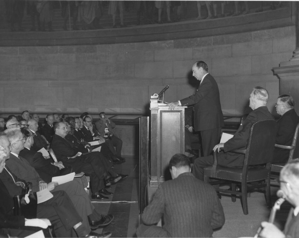 John A. McCone, director of the central intelligence agency, summarized Russia’s present military strength and future development for the congressmen. Secretary of Defense Robert S. McNamara gave the briefing on United States power. Secretary of State Dean Rusk gave a situation report on related areas in foreign affairs and policies. “The discussion covered both the status as of today and as it is forecast through the decade of the 1960s,” the White House said in a statement. “The President emphasized that the United States military program will continue to provide for a strategic force sufficiently large to absorb a surprise attack and survive with sufficient power to be capable of destroying the aggressor.”