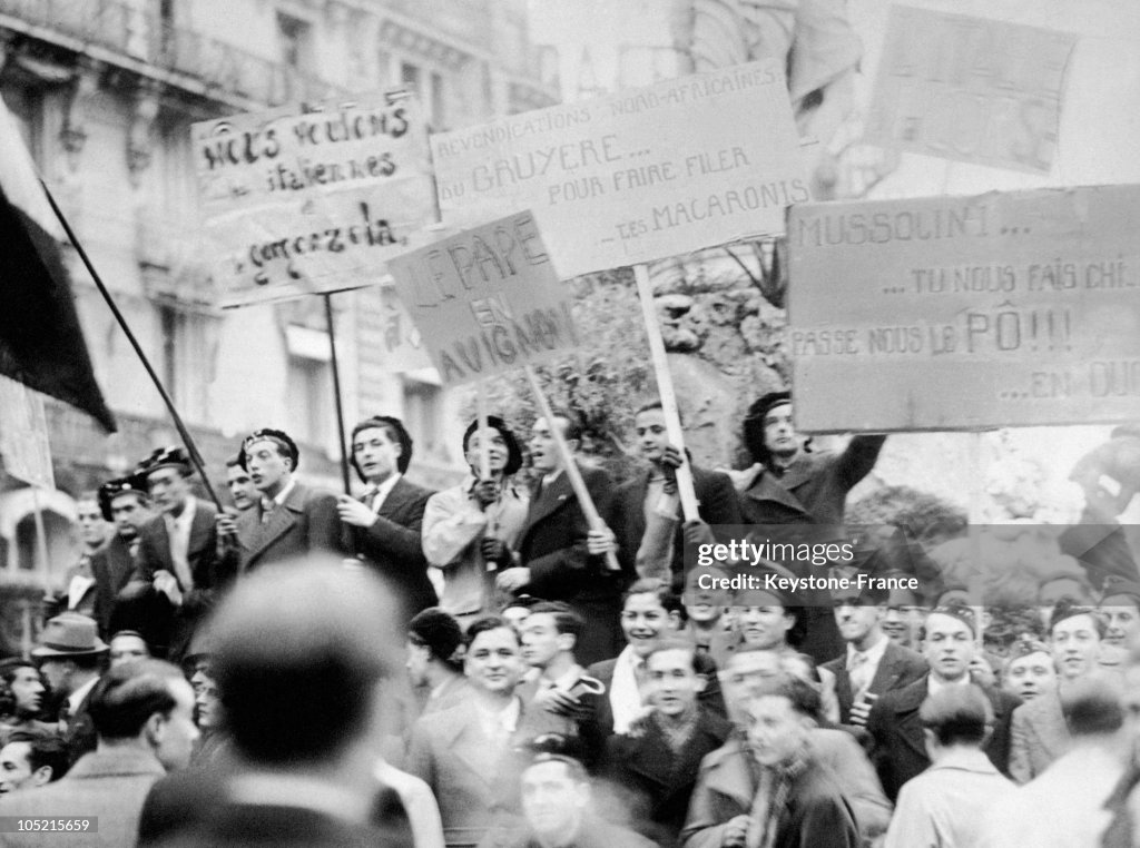 French planes, ships, submarines, and troops arrive to reinforce Tunis, Tunisia, where anti-Italian demonstrations continue.