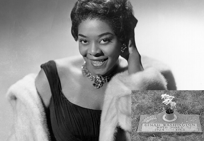 By 1962, however, Washington’s record sales were falling, and despite a move to Roulette Records, she never again topped the charts. However, she left a strong legacy behind her, influencing artists such as Aretha Franklin and paving the way for African-American singers in the commercial popular music market. Washington’s private life was sometimes tumultuous; she was married seven times, divorced six, and battled both weight problems and addiction to diet pills all her life. She died at the age of 39 on December 14, 1963 in Chicago due to an accidental overdose of prescription sleeping pills. Washington is interred at Burr Oak Cemetery in Alsip, Illinois.