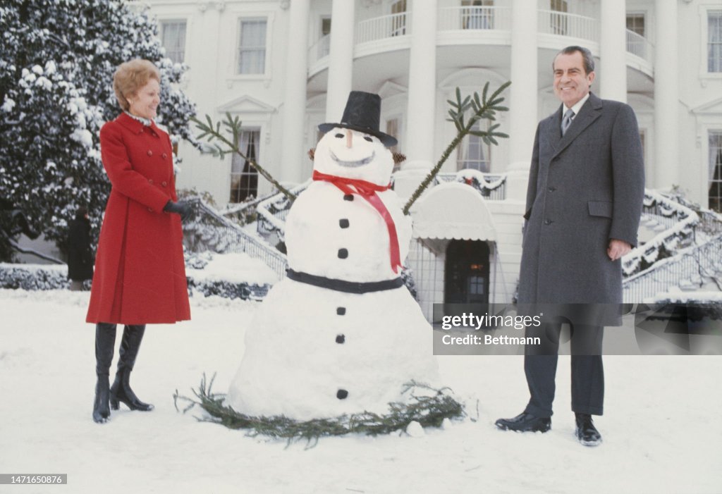 A major snowstorm hit the Northeast and Atlantic coast. Commuters find transportation extremely difficult in New York City; in Washington, DC, the storm slowed the pace of government somewhat. President and Mrs. Nixon were enticed out into the snow to pose beside a snowman. Shutdowns due to the snow accomplished energy conservation in Washington quicker than all of the President’s emergency energy bills.