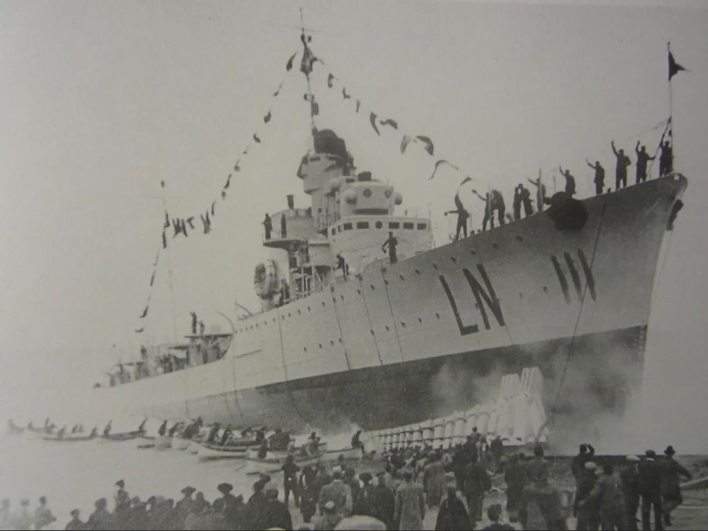 The Regia Marina (Royal Italian Navy) Soldati-class (First Group) destroyer Lanciere is launched by Cantiere navale di Riva Trigoso (Riva Trigoso, Italy).