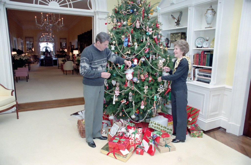 President Reagan makes a Radio Address to the Nation about Christmas. The President used his weekly radio address to deliver a Christmas message, then left the Oval Office to return to his living quarters and decorate a tree with his wife. Nancy. Among the ornaments they hung on the family tree were two decorations made for them by the Korean youngsters, 7-year-old Ahn Ji Sook and 4-year-old Lee Kil Woo, who traveled to the United States with the Reagans in November and underwent heart surgery in New York. The children have returned to South Korea. In the radio talk, Reagan turned to the Bible in calling for a “spirit of righteousness” in the nation.