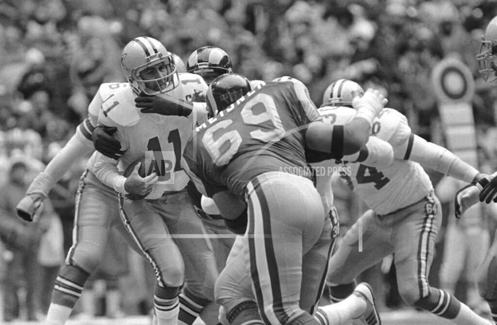 Rams rookie running back Eric Dickerson rushed for 99 yards and caught two passes for 11 yards. Tony Hill set a franchise playoff record with nine receptions for 115 yards. Ferragamo completed 15 of 30 passes for 162 yards and three touchdowns. White completed 32 of 53 passes for 330 yards and two touchdowns, with three costly interceptions. The Cowboys had reached the conference championship game the three previous seasons, and this year their 12-4 record was bettered in the league only by the Redskins’ 14-2. They were favored by 7½ points here, largely because of their ball-control offense. But their ball control depends on their running game. In their 12 regular-season victories, they rushed for more than 100 yards each time. In their four losses, they did not. Here, Tony Dorsett, their bread-and-butter runner, carried 17 times for only 59 yards, and their ground game gained only 63 yards.
