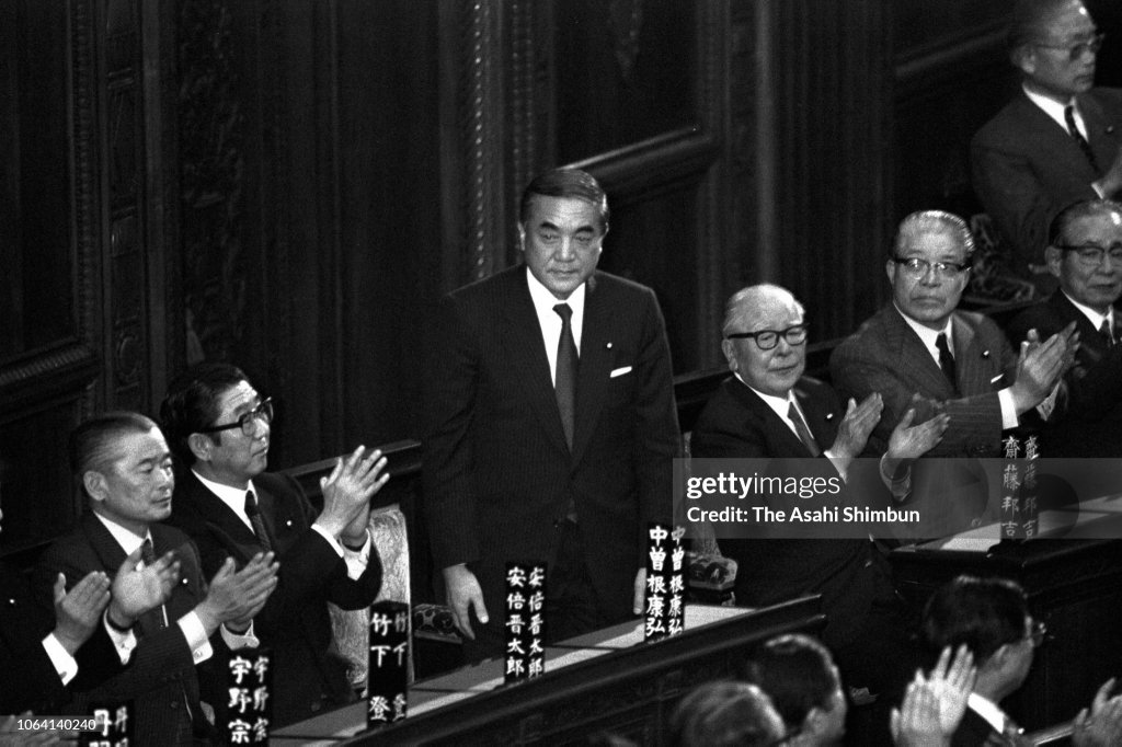 Yasuhiro Nakasone was elected formally by Parliament to a second term as Japan’s Prime Minister. The action came after he formed a coalition Government to strengthen his parliamentary position.
