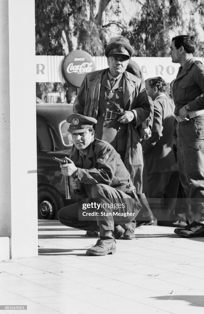 The Jordan police and army swooped on the brotherhood after learning that its leaders were planning a secret meeting to discuss tactics during the pope’s stay and also the publication of a proclamation calling for the satisfaction of their claims in Palestine. Jerusalem is swarming with policemen in plain clothes, many of them specially recruited for the occasion from the Jordan army on which King Hussein’s throne depends. Thousands of uniformed soldiers are moving in to reinforce those who have been stationed here since early December when the regime took emergency measures to thwart a projected coup by pro-republic groups.