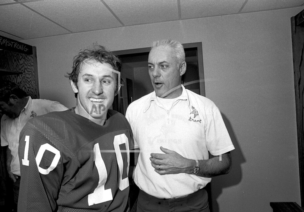 “Our whole philosophy with these playoff games,” said Fran Tarkenton, “is not to try to keep from losing them, but to win them. I’ve seen an awful lot of these games, on television, and usually teams go into them tight with the idea not losing, rather than winning. So we attacked.” Tarkenton and the other 37 Minnesota Vikings executed the philosophy and crushed the Dallas Cowboys today in Texas Stadium. The Vikings forced 4 interceptions and recovered 2 fumbles in the second half while also holding Dallas to 152 total yards en route to a 27—10 victory over the Cowboys. With the loss of running back Calvin Hill and defensive tackle Bob Lilly to injuries, Dallas’ offense could not get anything going. Minnesota jumped to a 10—0 lead by halftime with a Fred Cox field goal and an 86-yard drive that ended with a 5-yard rushing touchdown by Chuck Foreman. The touchdown drive included Fran Tarkenton’s completions to tight end Stu Voigt for gains of 16 and 7 yards, a 2-yard run by Foreman on 4th down and 1, and a 12-yard scramble by Tarkenton himself. What followed would be an amazingly sloppy second half in which both teams combined for 10 turnovers. Three minutes into the third quarter, Dallas quarterback Roger Staubach threw an interception to Minnesota cornerback Bobby Bryant on the Vikings 2-yard line. But the Cowboys defense forced a punt and Golden Richards returned it 63 yards for a touchdown, cutting the score to 10—7. Tarkenton quickly struck back, throwing a 54-yard touchdown pass to John Gilliam, who managed to outrun single coverage by Cowboys future Hall of Fame defensive back Mel Renfro. Dallas responded with Toni Fritsch’s 17-yard field goal which cut the lead to 17—10.