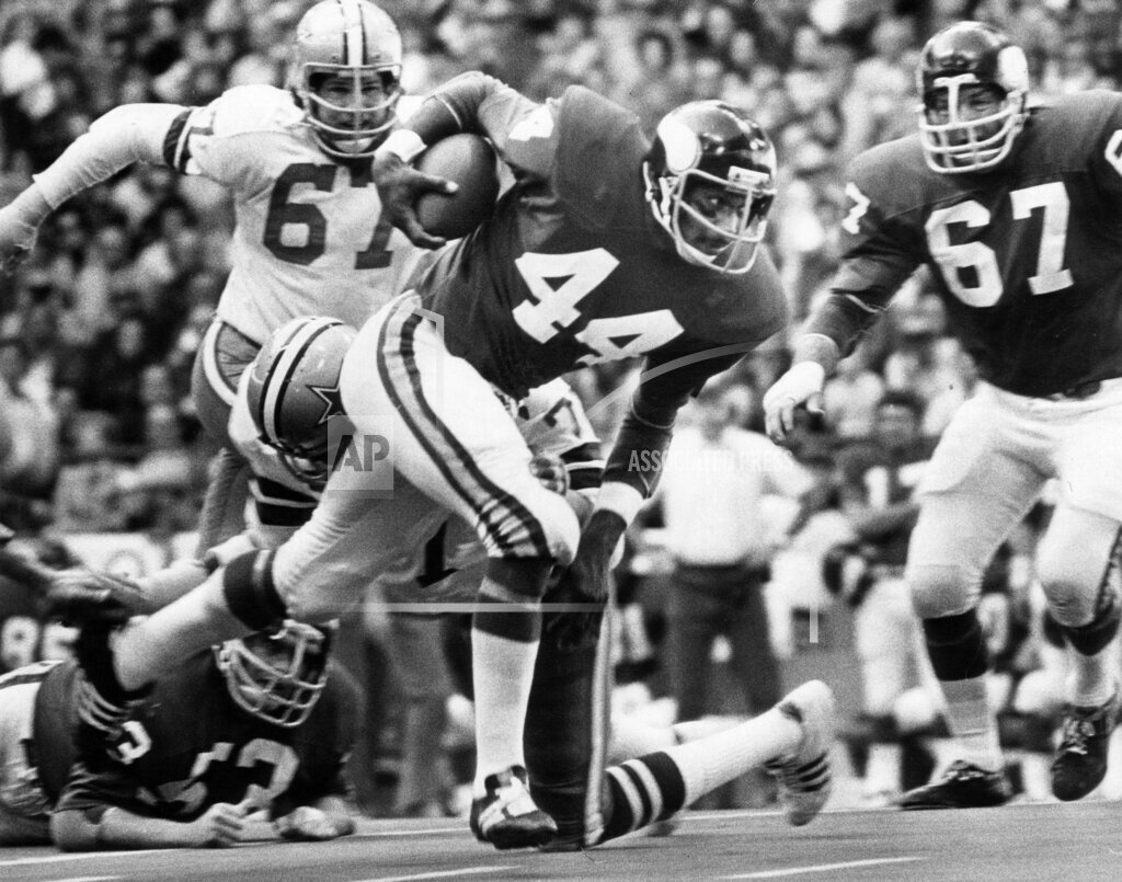 Then a wave of turnovers began. On the ensuing possession, Dallas got a huge opportunity to score when Charlie Waters forced a fumble from Foreman that safety Cliff Harris recovered on the Minnesota 37. However, the Vikings took the ball right back when Staubach threw a pass that was deflected into the arms of linebacker Jeff Siemon. An even better scoring chance awaited the Cowboys at the end of the Vikings’ next drive, as Tarkenton threw an interception to Waters on the Minnesota 24. But Dallas fared no better this time, losing the ball again when Jim Marshall knocked it out of Staubach’s hand as he wound up for a pass, and defensive lineman Gary Larsen recovered it. The offensive futility continued with Minnesota, as their next drive ended with a fumbled handoff exchange between Tarkenton and Foreman that Dallas lineman Larry Cole recovered on the Vikings 47-yard line. A few plays later, Dallas faced 3rd and 3 with 9 minutes left in the fourth quarter. Staubach attempted a pass to Bob Hayes near the right sideline, but Bryant intercepted the pass and raced 63 yards for a touchdown that put the Vikings up 24—10. Then on Dallas’ next drive, Staubach tried to connect with Drew Pearson, but a devastating hit by Nate Wright caused the ball to bounce off his hands and into the arms of Jeff Wright, who returned the ball 13 yards to set up Cox’s 34-yard game clinching field goal. Both teams combined for a net total of just 163 passing yards. Tarkenton completed only 10 of 21 passes for 133 yards and a touchdown with one interception, while also rushing for 16 yards. Staubach had one of the worst postseason performances of his career, completing just 10 of 21 passes for 89 yards and throwing 4 interceptions, though he did rush for 30 yards. Foreman was the top offensive performer of the day with 76 rushing yards and 4 receptions for 28, while fullback Oscar Reed added 18 carries for 75 yards and an 8-yard catch.