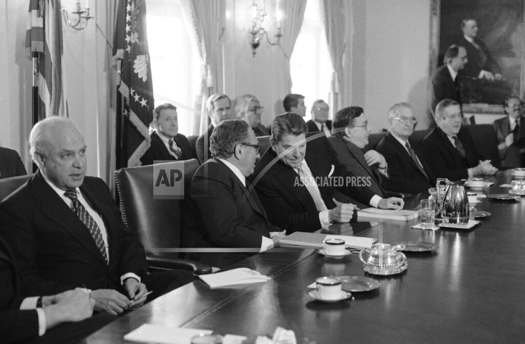 President Reagan receives a briefing from Henry Kissinger’s Central American Commission.