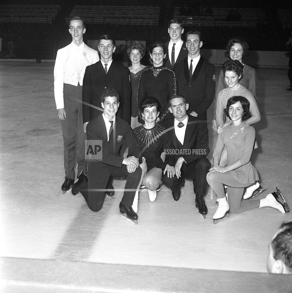 [Ed: The entire U.S. team had to start from scratch after everyone died in the 1961 airliner crash in Belgium. They will have only the most modest achievements in 1964. But pay attention to that one girl on the right in 1968…]