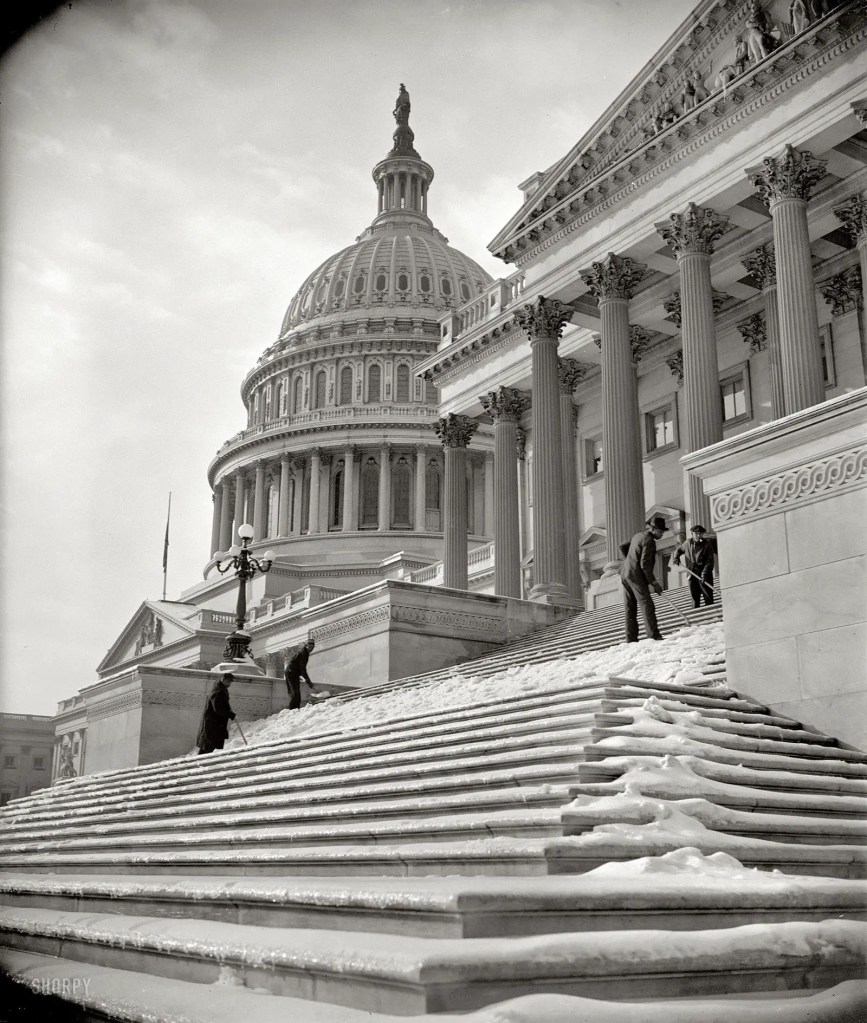 A snowstorm covers New York City and causes a severe traffic jam. Deep winter snows, routing false harbingers of spring, blanketed much of the nation last night with the heaviest fall of the 1938-39 season. At least 31 storm deaths were reported as subfreezing temperatures glazed highways from the Atlantic Coast to the Rocky Mountains. The fatalities resulted from airplane accidents, sledding mishaps, heart attacks while shoveling snow, traffic crashes on icy streets, and exposure. Nearly 10 inches of snow, two inches more than Thanksgiving Day’s heavy fall, covered New York and brought out 32,000 shovel-and-sweep workers to keep traffic moving. Hundreds of motorists abandoned their cars at the height of the storm. Maryland reported the heaviest snowfall since 1927, with 10 inches, while Wisconsin residents shivered amid nose-nipping temperatures.