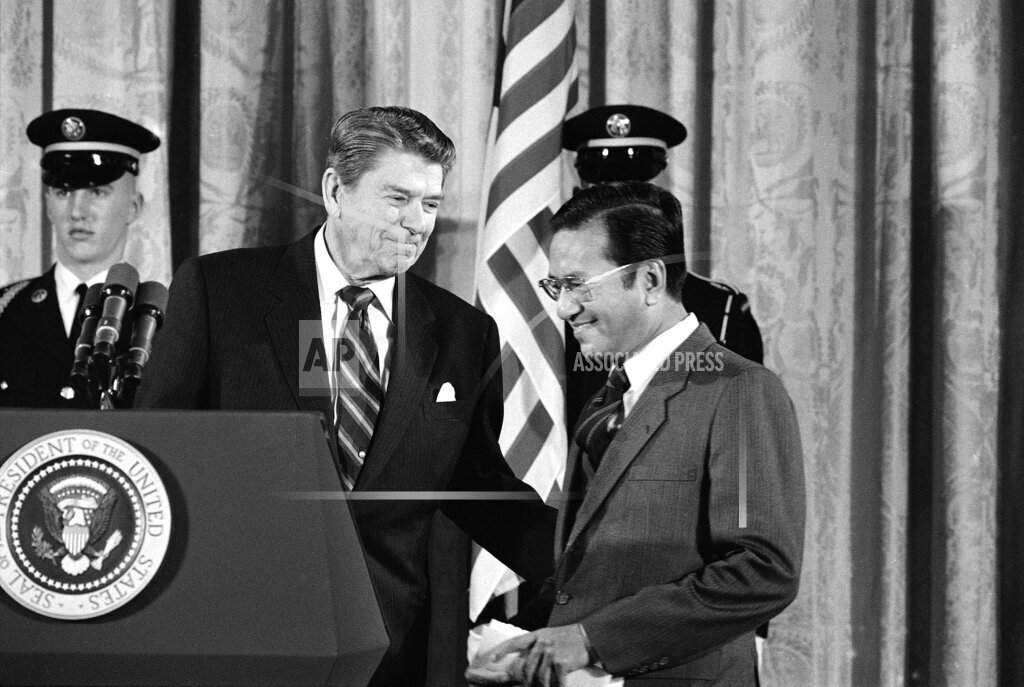 President Reagan holds a meeting with Prime Minister Mahathir of Malaysia.