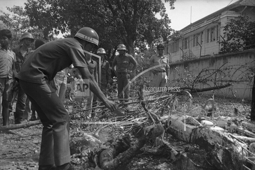 Earlier today all public and private schools and universities in Phnom Penh were ordered closed immediately because of the rebel rocket attacks on the capital. A French-run school had already closed yesterday after a rocket struck its grounds, wounding two persons and killing another. In his broadcast, President Lon Nol said: “This present attack is decisive. The enemy has even sent subversive elements into Phnom Penh, and North Vietnamese troops are on the east bank of the Mekong River to rocket the capital to scare our citizens” But he asserted that the Cambodian Army was systematically destroying the enemy forces “and we will win the war and become a free nation.”