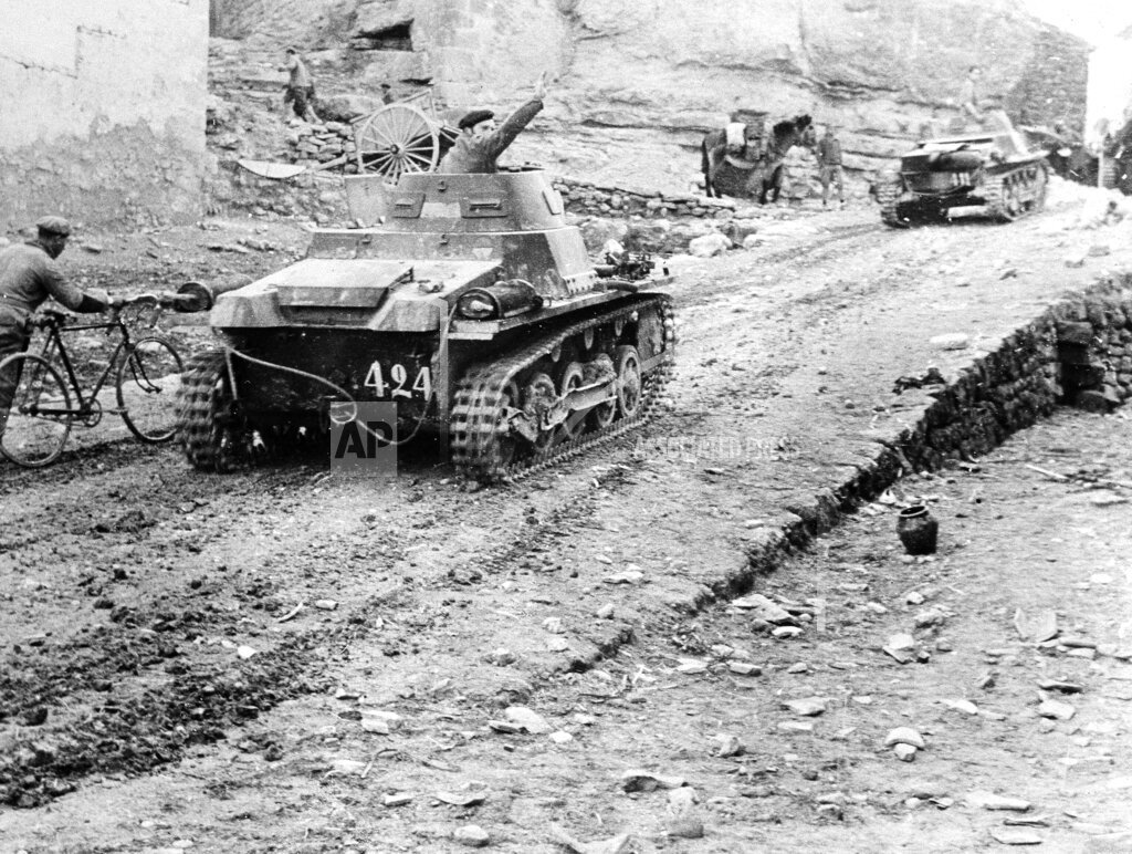 The final movement against the city was carried out from two sides, the west and the north. On the west General Juan Yagüe’s Moroccan troops, who had been waiting with ill-concealed impatience on the right bank of the Llobregat River, received their orders at dawn. Three divisions pushed across the river and spread over the country toward the industrial suburb of Sans and the grim fortress-crowned hill of Montjuich, which dominates the harbor area. A few trial rounds fired at Republican (Loyalist) positions brought no reply. It soon became evident that the Republicans had given up all serious hope of defending the city. The Nationalist advance was methodical, although uneven. In certain parts long stretches of road were covered without difficulty. In others isolated machine-gun nests would hold up whole battalions for an hour. But the Republican military machine had broken down. Most of these nuclei of resistance consisted of groups of machine gunners, clinging grimly to their weapons long after the country behind them had been evacuated. Nationalist infantry, carrying their flags before them, moved ahead, preceded by tanks. Gradually they reduced each center of resistance, thus allowing the main body to push on.
