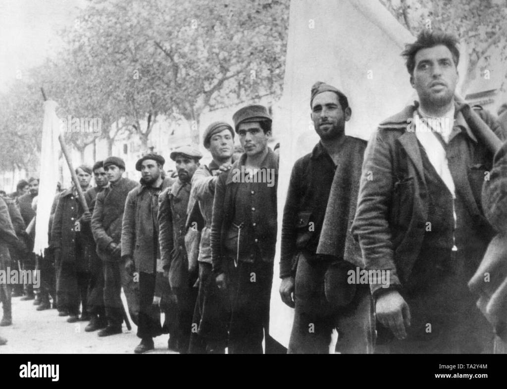 Barcelona falls without a significant fight. With Italian assistance, General Franco’s forces capture Barcelona, leading to the end of all Loyalist resistance. Over the next few weeks, Spanish Republican resistance collapses and Franco’s forces will secure Catalonia, as over 200,000 Republicans crossed over the border to France, where they were disarmed. Nationalist troops march through the streets of Barcelona. The Catalonia offensive is halted briefly, meaning many civilians who have fled north towards France have no advancing troops at their backs. But the German Condor Legion and Italian Aviazione Legionaria continue their campaign from the air, bombing towns and roads on the 160-kilometer hike to the French border.
