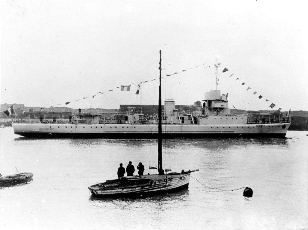 The Marine Nationale (French Navy) Elan-class minesweeper Commandant Bory is launched by At. & Ch de France (Dunkirk, France).