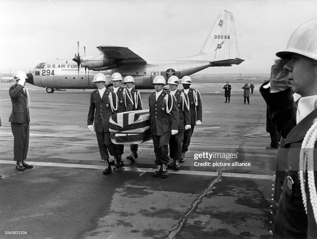The bodies of three United States fliers were returned today to Wiesbaden Base, which they left Tuesday on a routine training flight. The officers, two pilots and their instructor, died in the crash of their twin‐jet T‐39 trainer, which was shot down inside East Germany by Soviet fighter aircraft. The bodies of the officers—Lieutenant Colonel Gerald K. Hannaford, 41; Captain John F. Lorraine, 34, and Captain Donald G. Millard, 33, were recovered at the crash site near Erfurt, East Germany, last night. A United States military detachment brought them to Tempelhof Airfield, in West Berlin. early this morning. An honor guard and high United States officials, including Ambassador George C. McGhee, stood by as the coffins were placed aboard a C‐130 transport.
