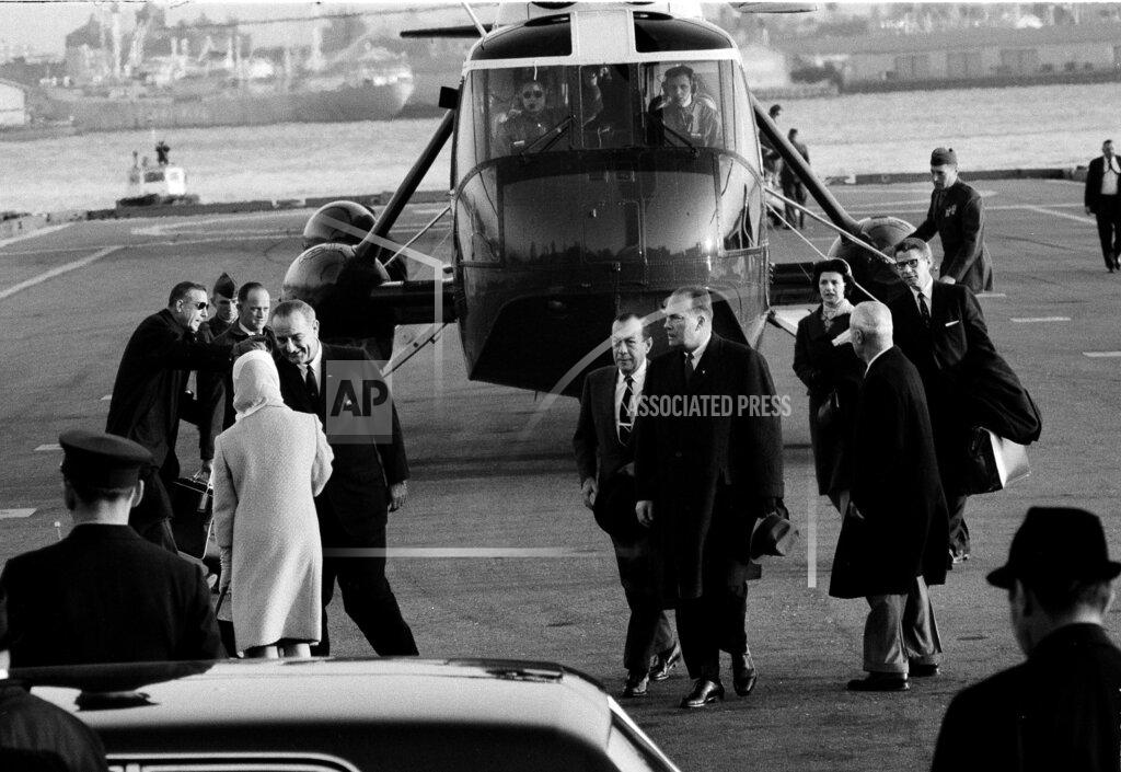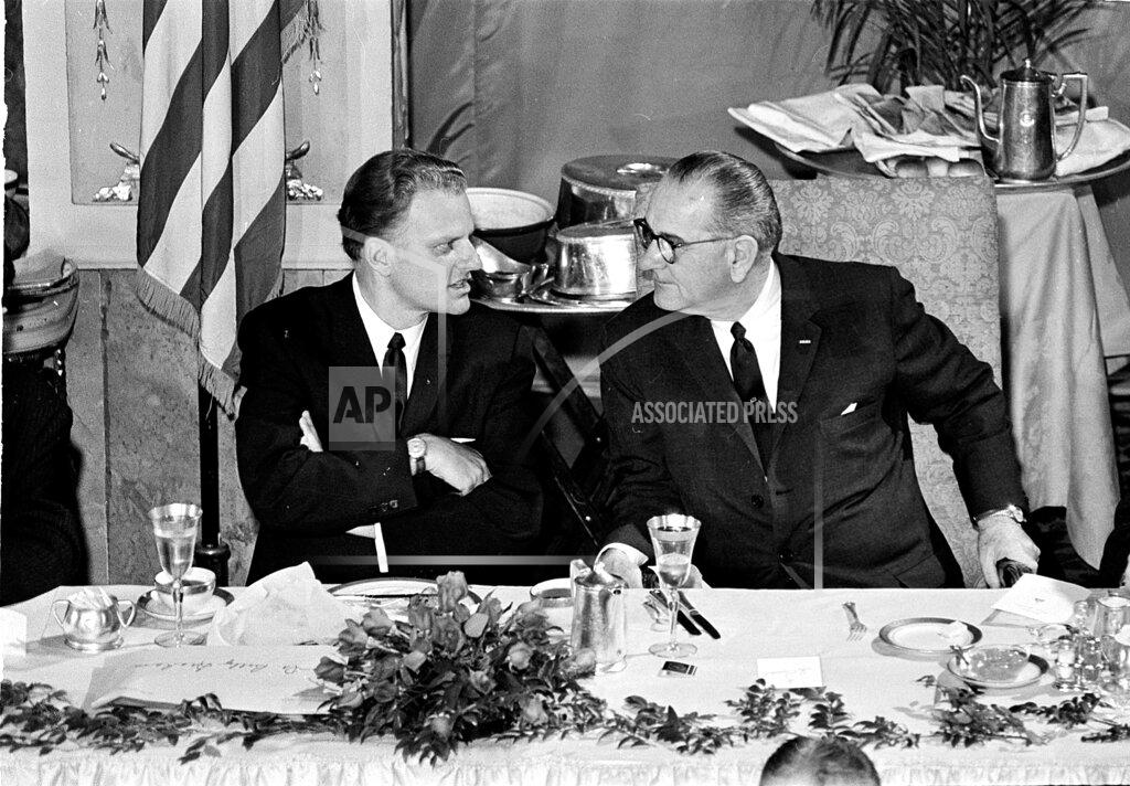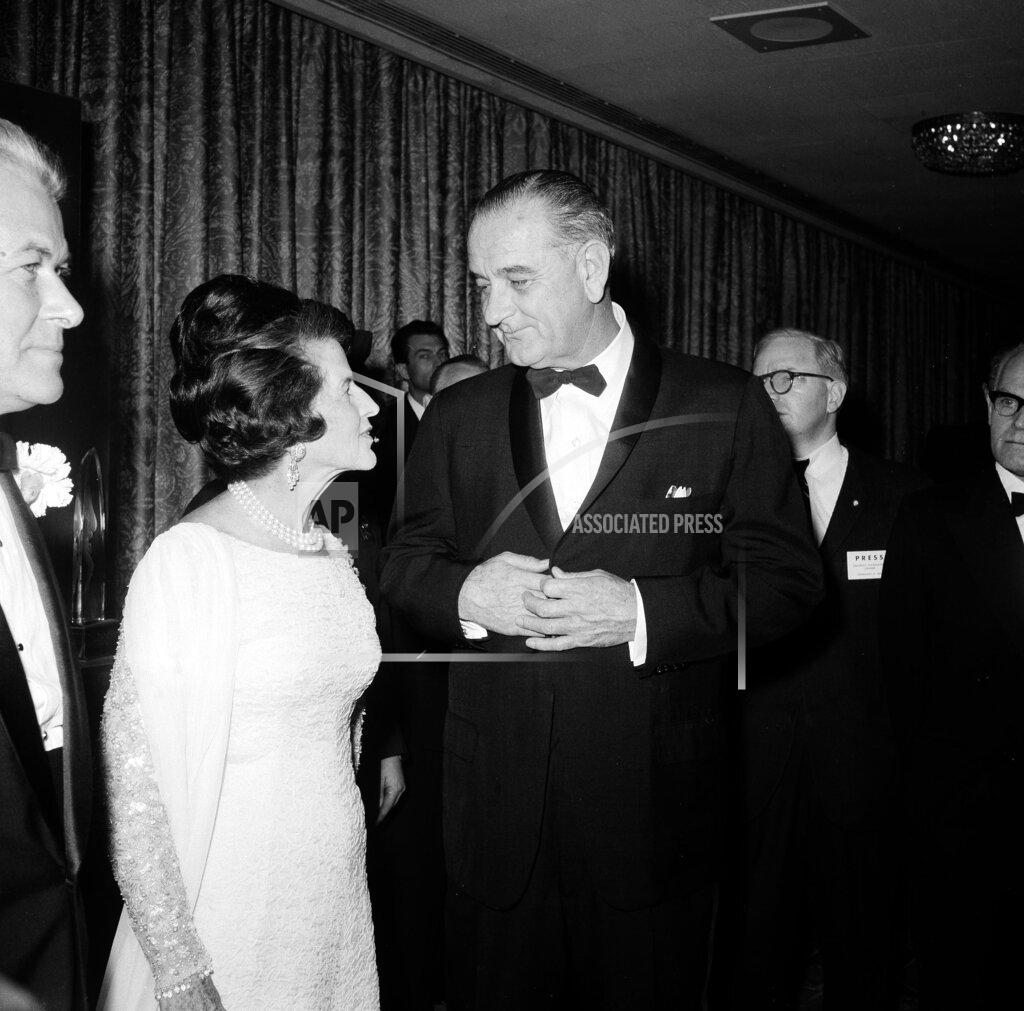 President Johnson promised here last night to continue the crusade launched by President Kennedy against “mental retardation and mental illness and poverty, and every other foe of the land he loved.” He spoke at the second annual international awards dinner of the Joseph P. Kennedy Jr. Foundation in the Americana Hotel where he presented six awards for scientific contributions in the fight against mental retardation. Arriving in Manhattan by helicopter from Kennedy International Airport, President Johnson set a precedent that may ease the security problems of the police on future Presidential visits. But the Presidential party, by arriving at the Downtown Manhattan Heliport, Coenties Slip and South Street, at 4:52 P.M. — only eight minutes ahead of the rush hour — severely tied up East Side traffic.