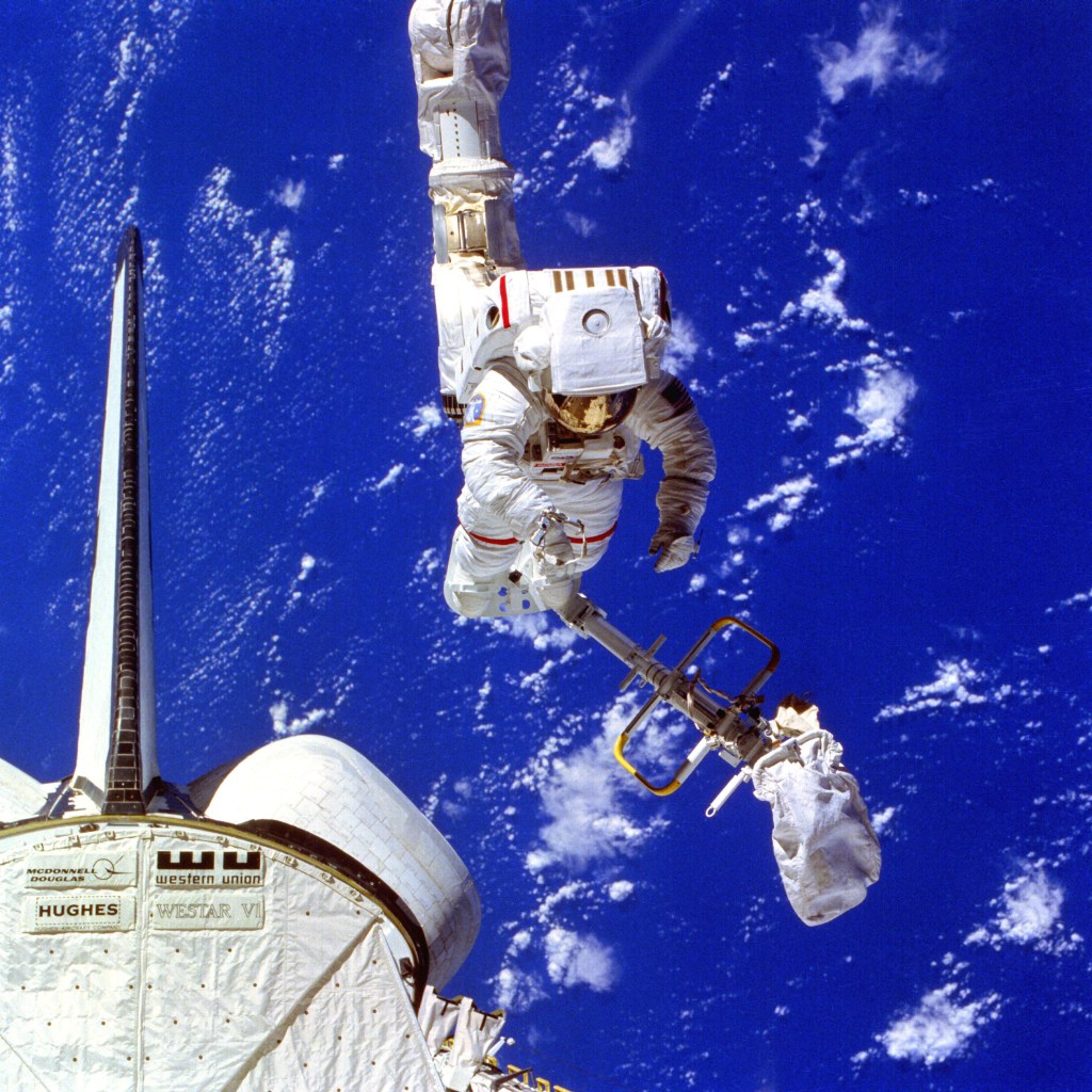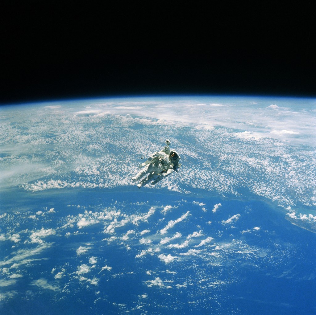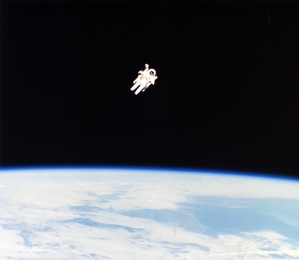 Two American astronauts flew out, up and away from the space shuttle Challenger free of any lifeline and propelled by tiny jets. The two space fliers, Captain Bruce McCandless 2nd of the Navy and Lieutenant Colonel Robert L. Stewart of the Army, became in effect the first human satellites. The successful test 170 miles aloft was an important step toward future operations to repair and service orbiting satellites and to assemble and maintain large space stations.