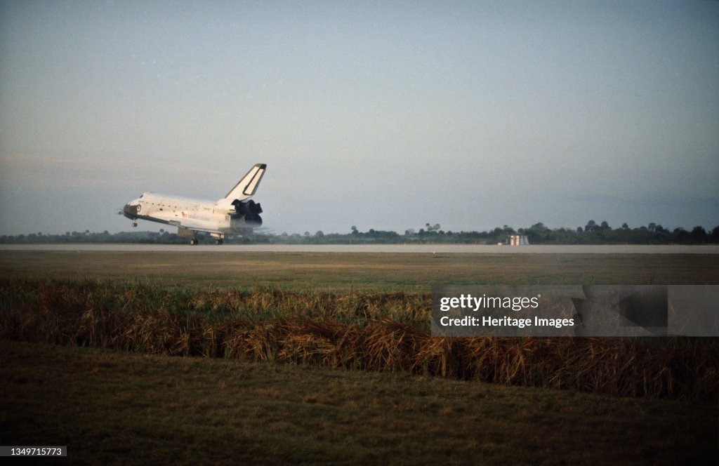 Challenger made a perfect landing at Cape Canaveral, the first time that a space shuttle has landed at its launching base. The landing, on schedule at 7:16 A.M., ended an eight-day STS-41-B mission marked by disappointing failures and dazzling achievements. Minutes after dawn, before Venus had set in the east, the winged spaceship soared out of the western darkness into the clear blue sky over the Kennedy Space Center, announcing itself with a double sonic boom. It glistened in the sunlight of the new day as it turned left out over the Atlantic and looped back to approach its runway from the northwest. Vance D. Brand, the commander, steered the white spaceship to a touchdown on the center line of the runway, a strip of concrete three miles long and 300 feet wide set in lush marshland of palmetto, wild pigs and alligators. The landing occurred on schedule at 7:16 A.M.