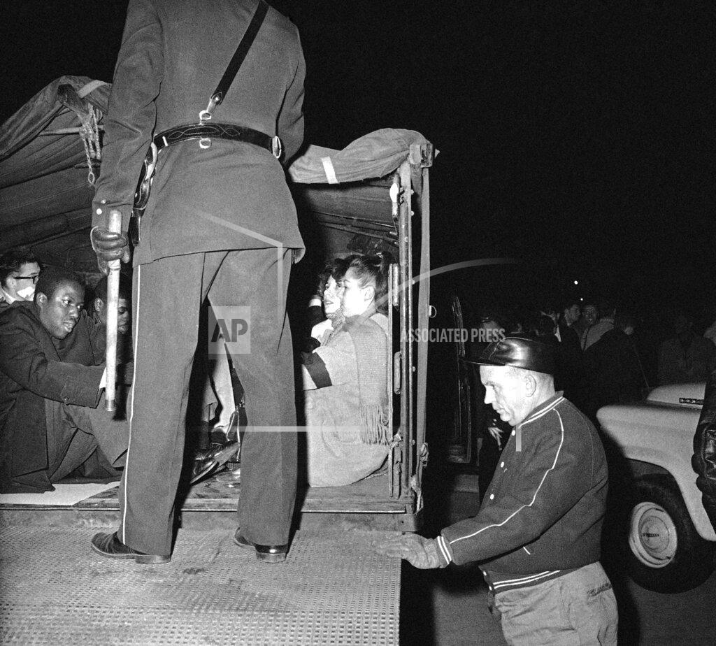 The police arrested 86 civil rights demonstrators tonight as they started a march toward the hotel where President Johnson was making a speech to open St. Louis’s 200th anniversary celebration. The demonstration, led by the St. Louis Committee on Racial Equality, was to point up racial unrest here, the group’s Midwest field representative, Eugene Tournour, said earlier. Many of the demonstrators arrested tonight were on probation from convictions of contempt of court growing out of earlier demonstrations.