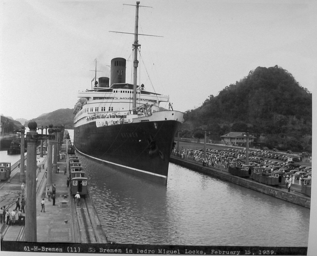 The 51,731-ton German passenger liner ‘Bremen’ becomes the largest vessel to have traversed the Panama Canal.