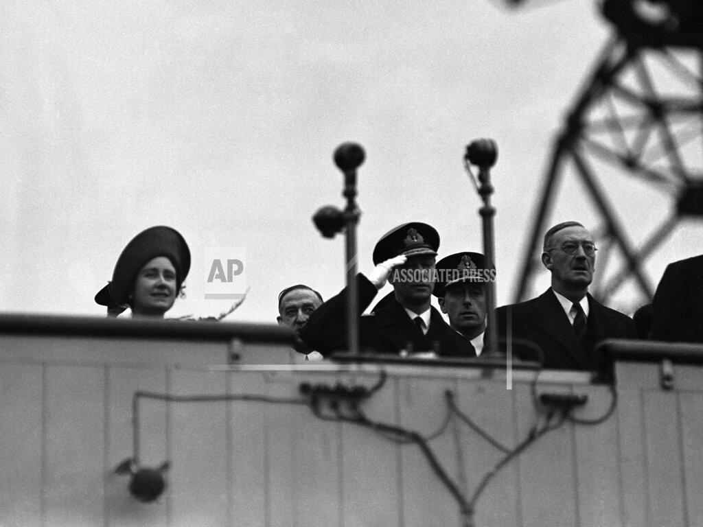 The battleship HMS King George V was launched. The 35,000-ton battleship King George V, the most impressive evidence the British people have yet had that this nation’s huge rearmament program is at last getting into its stride, was launched today by King George VI. The King, who himself served in the Royal Navy in his youth, seemed to share in the rejoicing of the workmen as he named the ship for his late father, who also was a sailor. “I name this ship King George V,” he said. “May God bless this ship and those who serve in her!” The King then pressed a button, which crashed a bottle of champagne against the bow of the new dreadnaught and simultaneously sent her down the ways into the River Tyne in exactly two minutes. While the band played “Rule, Britannia,” and sirens on every ship in the Tyne blared out, the King George V was gradually halted by her drag chains, and six tugs took her onto her fitting-out basin.