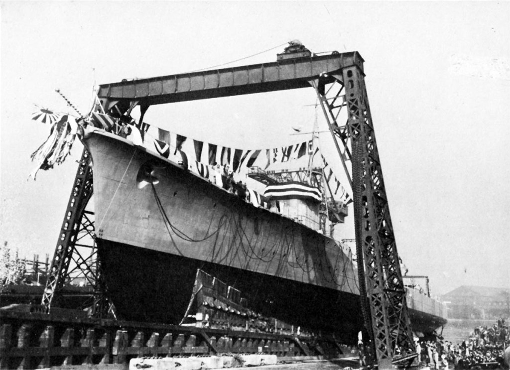 The Nihon Kaigun (Imperial Japanese Navy) Kagerō-class destroyer HIJMS Natsushio (夏潮, “Summer Tide”) is launched by the Fujinagata Shipyards (Osaka, Japan).