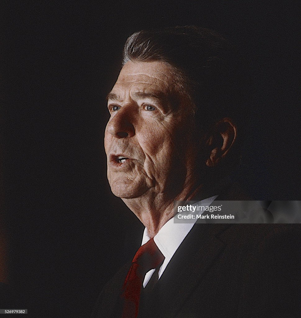President Reagan welcomes the Prime Minister of the Kingdom of Morocco, Mohamed Karim-Lamrani, to the White House.