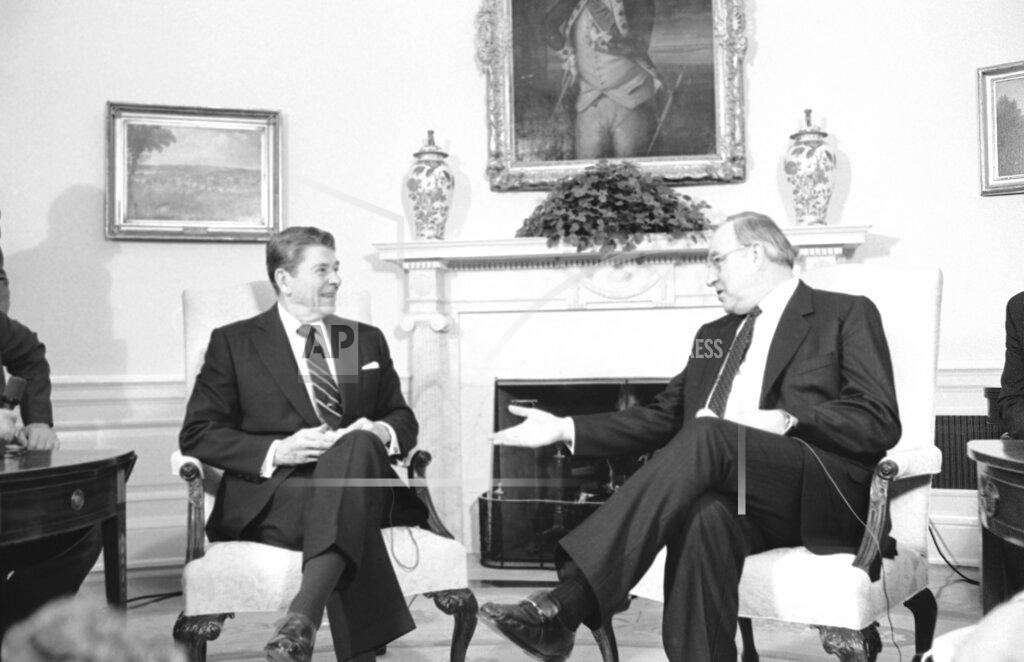 President Reagan meets with the Chancellor of the Federal Republic of Germany, Helmut Kohl.