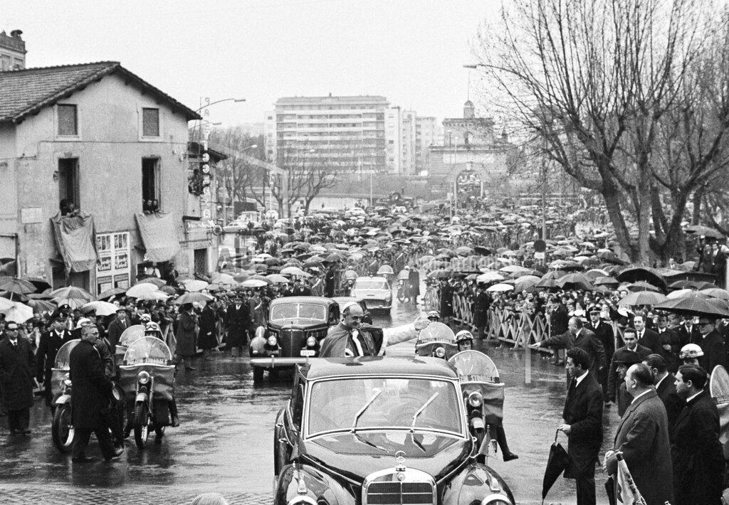 Pope Paul VI called today for a “dialogue” between Roman Catholics and Protestants with the aim of finding common ground. The Pontiff was speaking at a mass offered by him in St. Peter’s Basilica this morning to commemorate the 400th anniversary of the end of the Council of Trent. About 5,000 pilgrims from Trent and other places in Northern Italy were in the congregation. At noon, car horns blared a greeting and firemen clambered up aerial ladders and waved as the Pope appeared at a window overlooking St. Peter’s Square to bless several hundred vehicles assembled there. The vehicles had paraded across the center of Rome to the Vatican after a mass celebrated at the Colosseum in honor of St. Frances of Rome, patron saint of motorists, whose feast day is tomorrow.