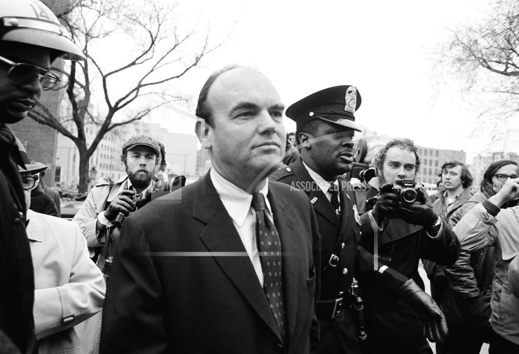 Seven of President Nixon’s former associates, charged with covering up the Watergate burglary, pleaded not guilty before Chief Judge John Sirica in Federal District Court in Washington. They entered the courtroom through a jeering crowd of about 250 persons that was held back by the police. Among the seven, John Ehrlichman and Charles Colson also pleaded not guilty to charges brought last Thursday arising from the Sept. 3, 1971, burglary of the office of Dr. Daniel Ellsberg’s former psychiatrist. The five others at the arraignment were John Mitchell, H.R. Haldeman, Kenneth Parkinson, Robert Mardian and Gordon Strachan.