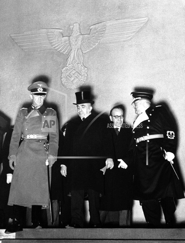 During the day, Czechoslovakian President Emil Hácha traveled by train to Berlin, Germany to conduct last-minute negotiations with Adolf Hitler to save his country. After the secession of Slovakia and Ruthenia, British Ambassador to Czechoslovakia Basil Newton advised President Hácha to meet with Hitler. When Hácha first arrived in Berlin, he first met with the German Foreign Minister, Joachim von Ribbentrop prior to meeting with Hitler. Von Ribbentrop testified at the Nuremberg trials that during this meeting Hácha had told him that “he wanted to place the fate of the Czech State in the Führer’s hands.”
