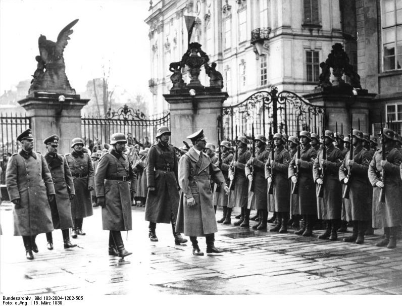 The German vanguard reached the square in front of the Hradschin at 9:15. Armored cars took up positions with guns pointing at the city, which, with its hundred towers, spreads out at the foot of the castle. At the same time army trucks drove to police headquarters and German police officers and men began to take over the security service.