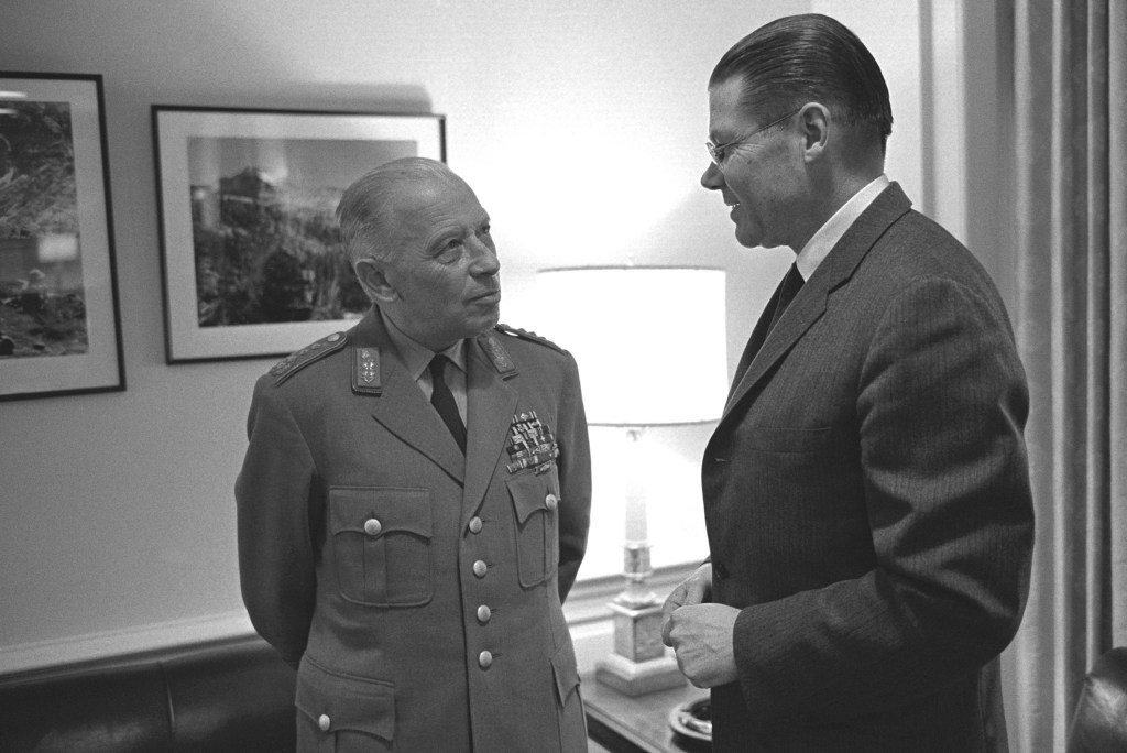President Johnson presides over a crucial session of the National Security Council, at which McNamara and Taylor present a full review of the situation in Vietnam as they observed it. The statement issued to the public afterwards says that the United States will increase military and economic aid to support Khánh’s new plan for fighting the Viet Cong, including his intention to mobilize all able-bodied males, raise the pay and status of paramilitary forces, and provide more equipment for the armed forces.