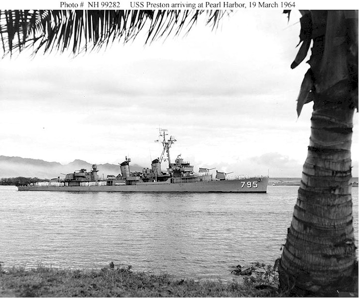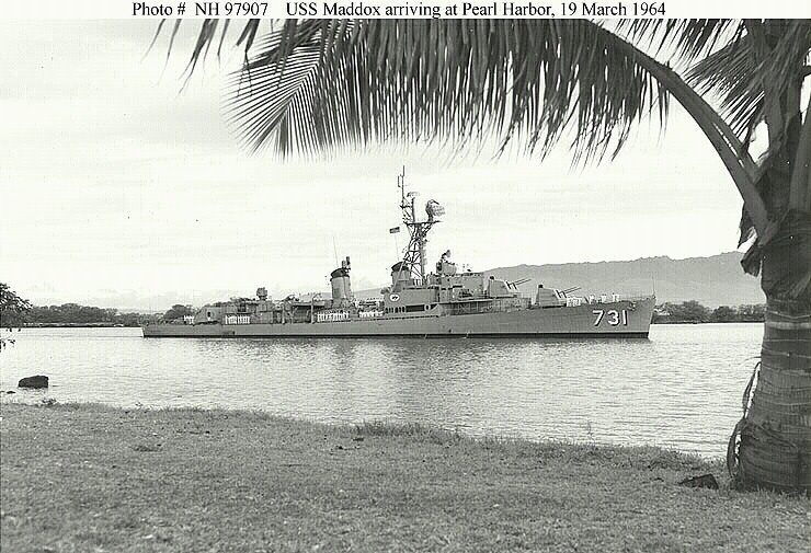 [This is one of the destroyers which will be involved in the Tonkin Gulf Incident in August of this year, which will provoke/excuse greater U.S. involvement in Vietnam.]