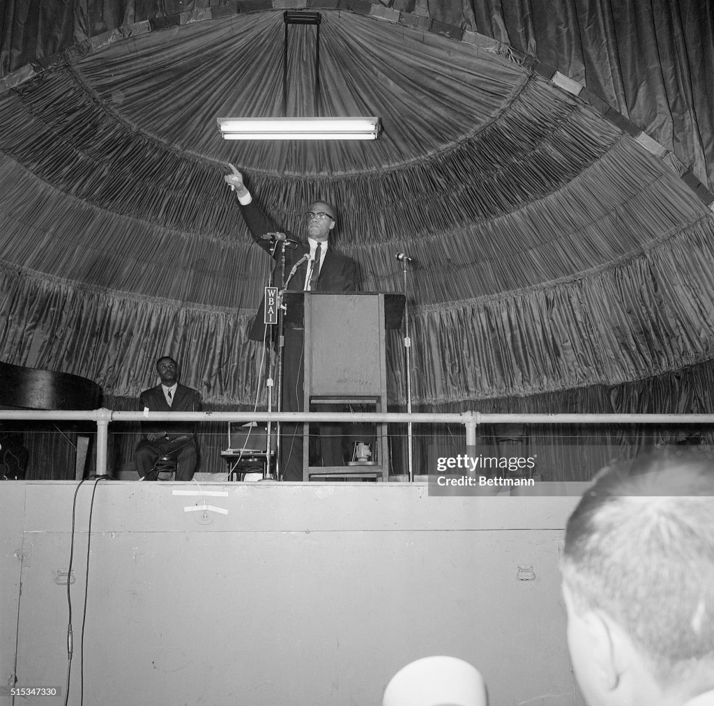 To win control politically and economically of their own communities, Malcolm X urged “22 million so‐called Negroes” to join any Black Nationalist organization or any organization practicing that philosophy. By May or June, he said, the movement could hold a national convention here — “if they won’t let us have Madison Square Garden, maybe we can have it in Times Square.” Then, he went on, amid applause, “if it’s necessary to form a Black Nationalist party — or a Black Nationalist army — we’ll form it.” Another tactic he proposed was to “internationalize” the civil rights problem here to a human rights issue, which would allow it to be taken to the United Nations. In the world organization, he said, American Blacks would have friends in African nations and “800 million Chinese.”