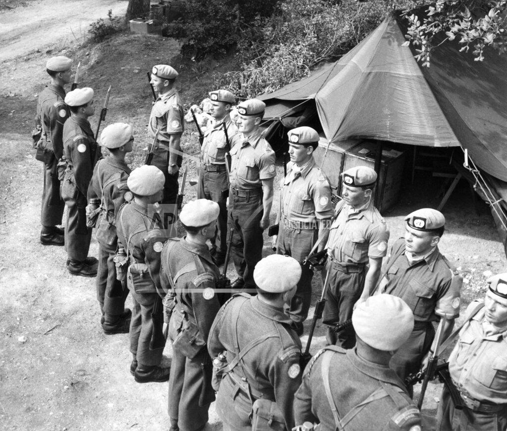 A company of United Nations soldiers, French‐Canadians of the Royal 22nd Canadian Regiment, arrived in Kyrenia on the island of Cyprus today to take over the task of keeping the peace between Greek and Turkish Cypriotes. Although Kyrenia itself has been spared from the intercommunal fighting that covered much of Cyprus, trouble broke out all around the perimeter of this harbor town. The trouble around Kyrenia was, reflected in an incident at the town’s harbor this morning when the usual quiet was broken by shouts, the noise of running feet and the sound of nearby voices in Greek.